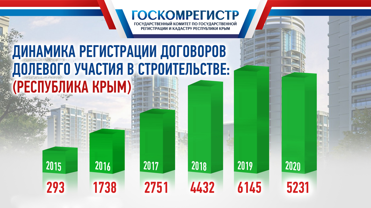 В 2020 году спецалистами Государственного комитета по государственной регистрации и кадастру Республики Крым зарегистрировано более 5200 договоров долевого участия в строительстве (ДДУ). Об этом сообщил председатель Госкомрегистра Александр Спиридонов.